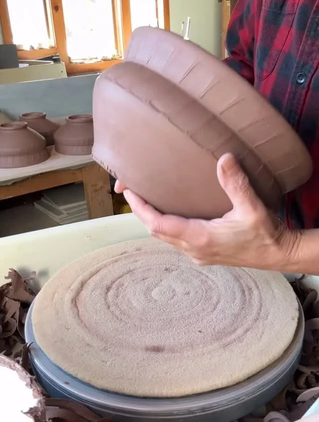 “The sheer physical nature of pottery making fills many aspects of my being. It satisfies both the artist and the athlete in me. Pottery is a constant quiet motion; the rhythms are like meditation, moving meditation. I compare it to riding my bicycle through the beautiful hills and farms where I live. As I ride I become one with this beauty that surrounds me: as I make pots I become one with the clay and beauty that is unfolding. It is a great gift to bring beauty into this world. As a potter I have the opportunity to bring the extraordinary into the ordinariness of our daily lives. This clay… this stuff of life: so ordinary yet so extraordinary as it passes through the potter’s hands. I am blessed that my hands become co-creators in this great mystery of creation in constant process.”