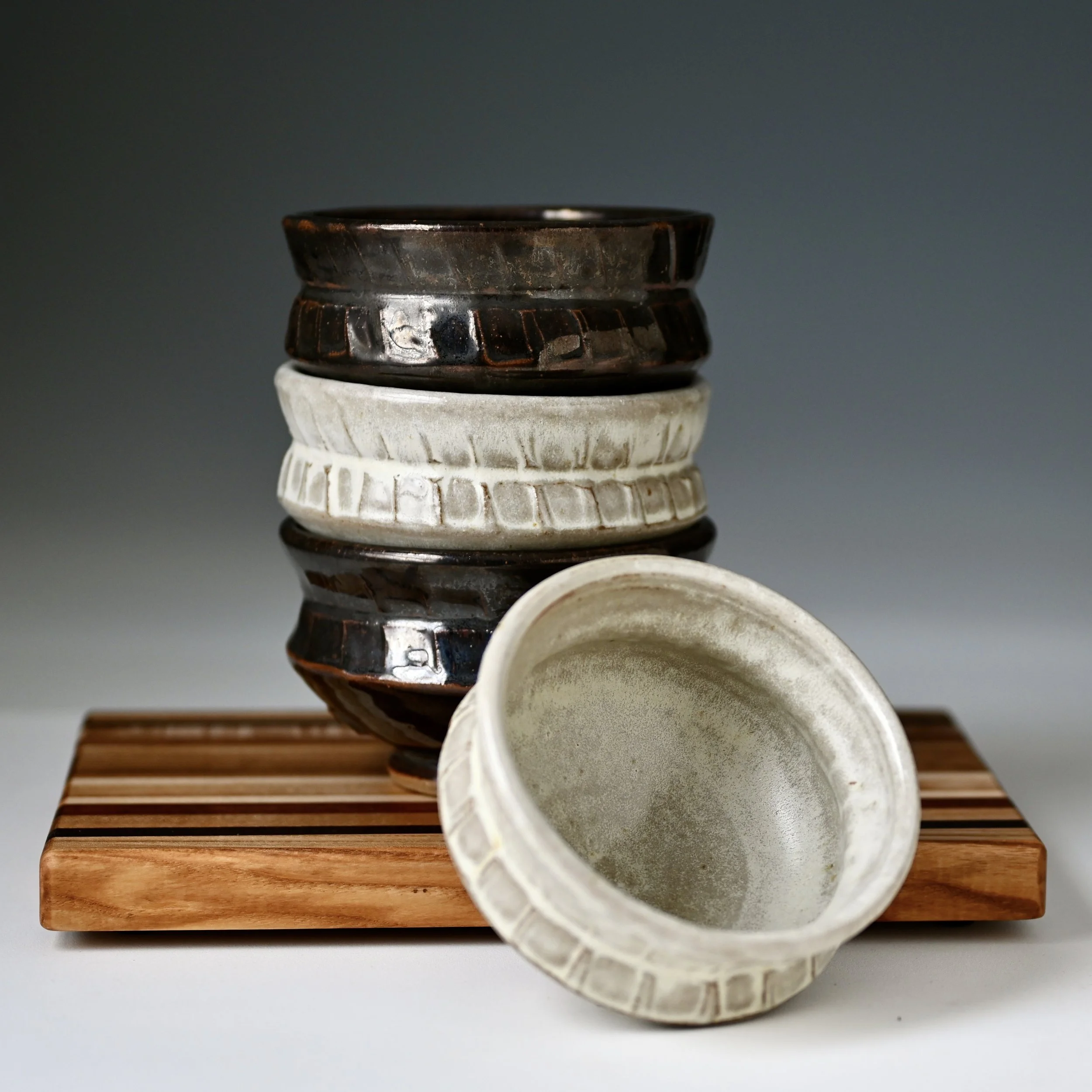 Shopping for pottery via photos online can be tricky. Pottery wants to be touched and not only seen on a screen. I do my best to take good photos with a few different vantage points. The piece in the photo is ALWAYS the piece you will receive. I also list the dimensions for each piece, or the fluid ounces for a mug.